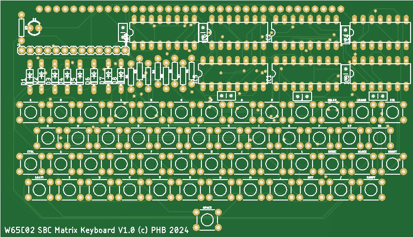 UK101/Superboard-compatible matrix keyboard PCB. Address decoded at $DF00. Perfect for retro software testing.